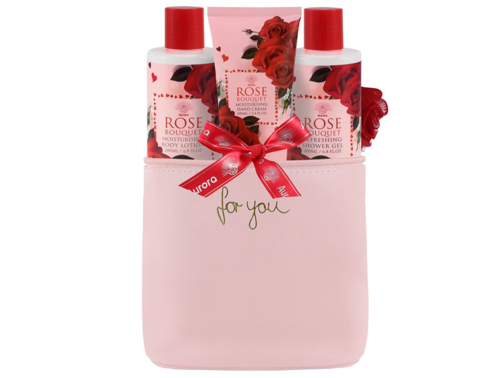Sada obsahuje štyri telové umývacie a ošetrujúce kozmetické prípravky AURORA s romantickou a atraktívnou vôňou ruží.