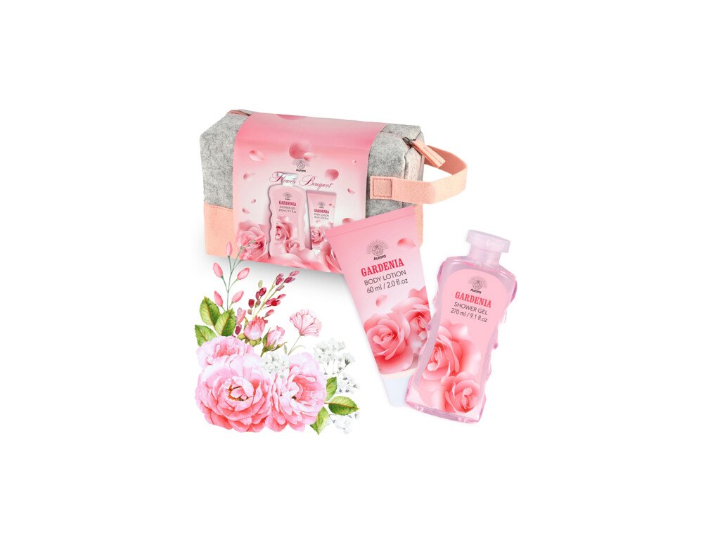 Darčeková sada Aurora s jedinečnou vôňou rozkvitnutých kvetov predstavuje komplexnú starostlivosť o telo v štýlovej plstenej kozmetickej taštičke. Celá sada je perfektným tipom na darček pre milovanú osobu alebo pre seba.